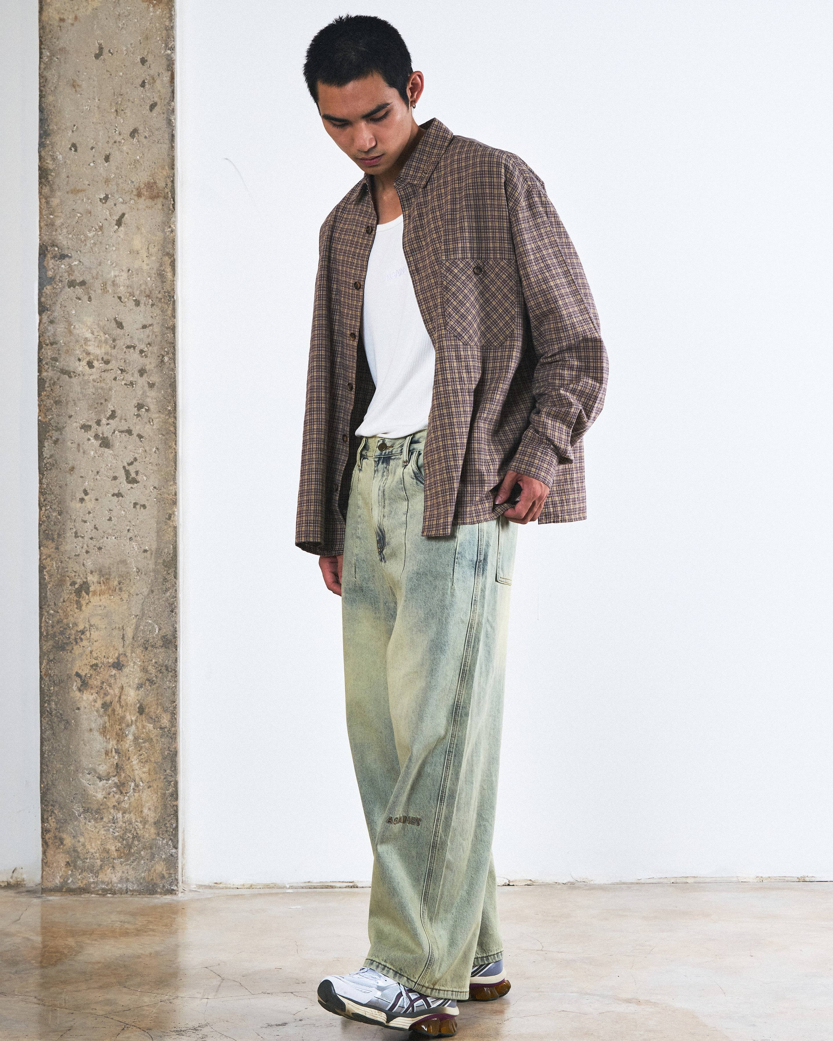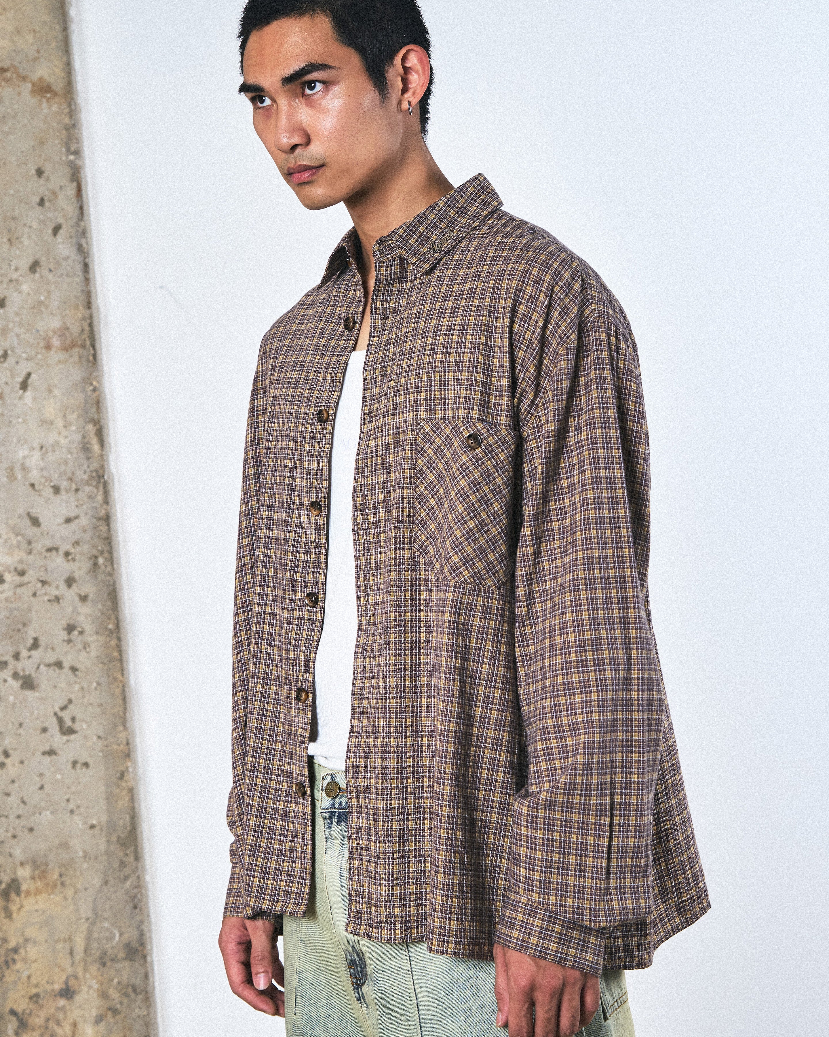 DETAILS - 100% cotton - Steel logo plate stitched on colar - Brown marble-like button closure - Front pocket